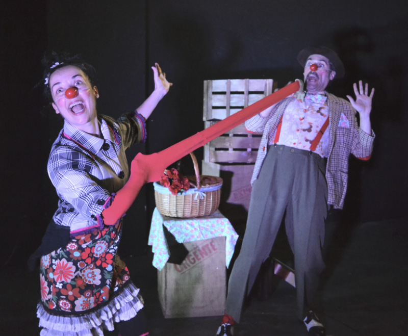 | Dos personajes insólitos entran en escena para regalarnos una hora del circo más auténtico._El, payaso torpe, acróbata excéntrico y equilibrista desequilibrado.Ella, pícara ilusionista, simpática perfeccionista y alquimista de la gravedad. Circo lleno de humor y magia, entrelazado mediante un hilo teatral y musical.Acrobacia, Cascadas, Aro aéreo, Malabares, Equilibrios, Cuerda volante y Clown.Todo combinado hacen de Katakrak... Simplemente Circo !!! (web oficial) |