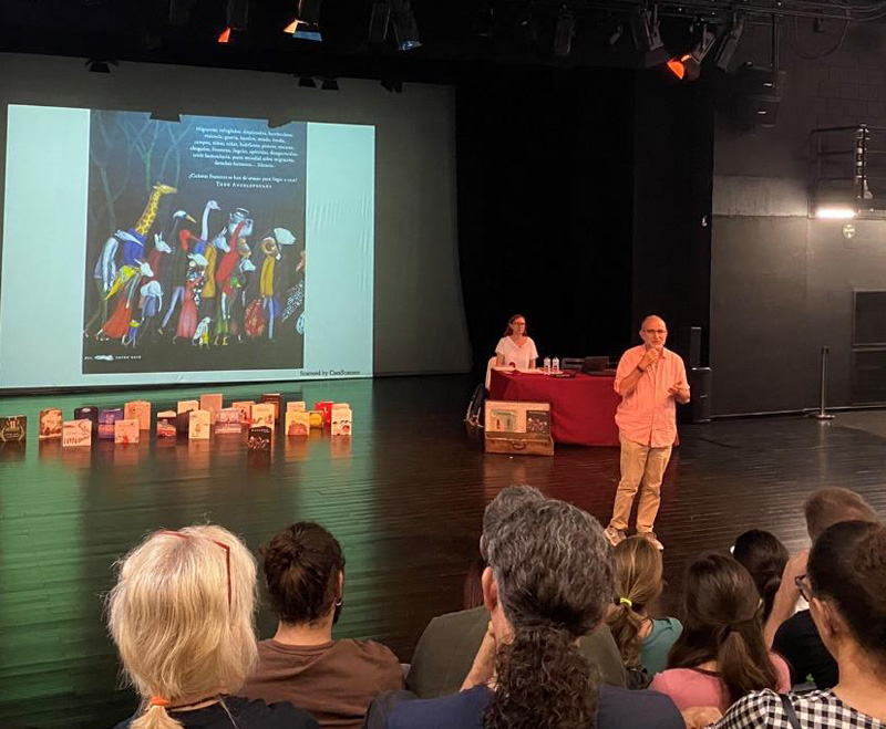 | Dos profesores poco comunes van a empezar una simpática conferencia sobre la poesía de Federico García Lorca, pero antes de que empiecen a hablar pasa algo misterioso: encuentran un montón de cubos con letras escritas en cada cara. Los niños participan activamente: contestando a preguntas, interviniendo para ayudar a los actores en momentos de “dificultad”, o lo que la sorpresa decida. Este espectáculo cuenta con interpretación en lenguaje de signos. (web oficial) |